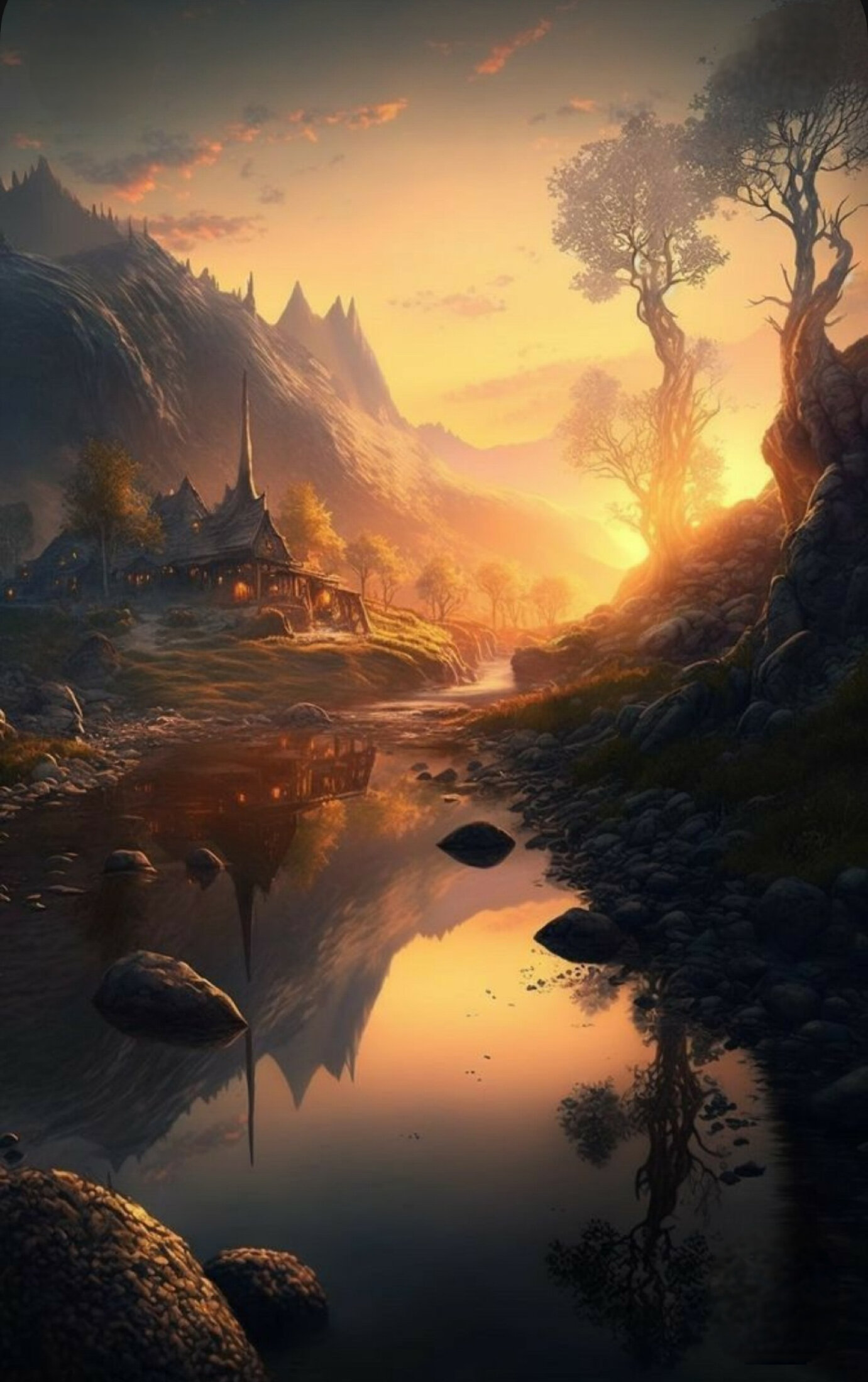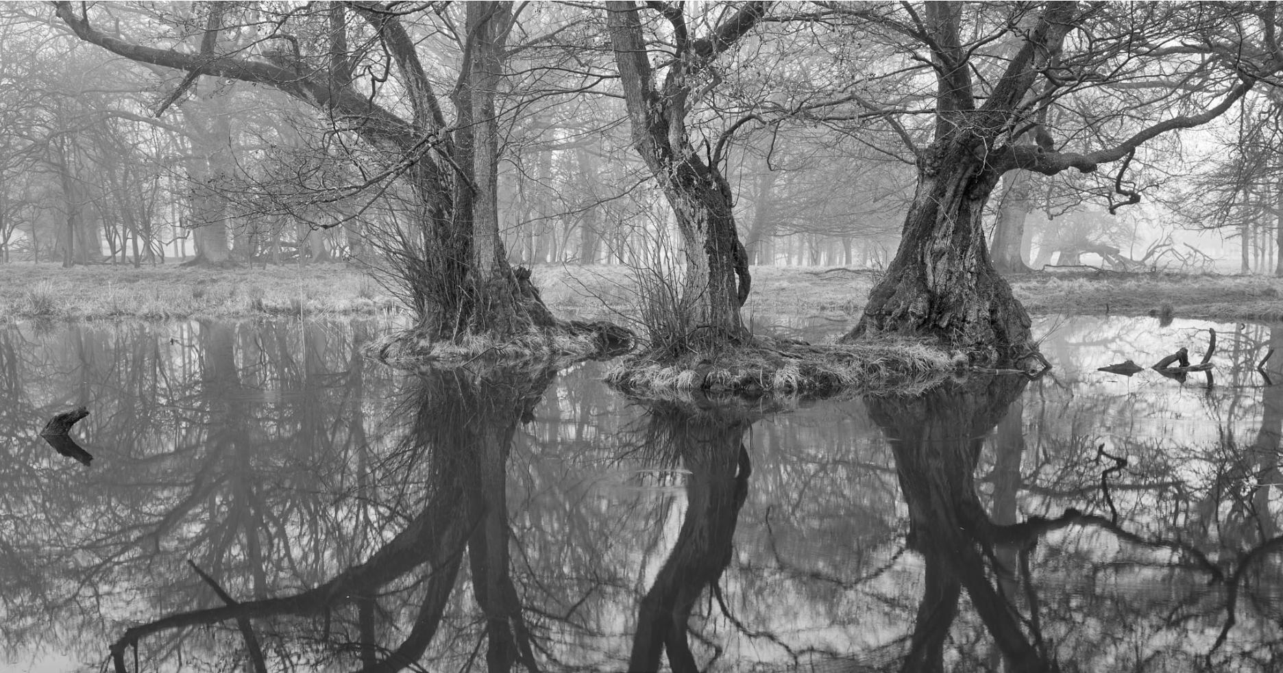 Black and white reflective trees