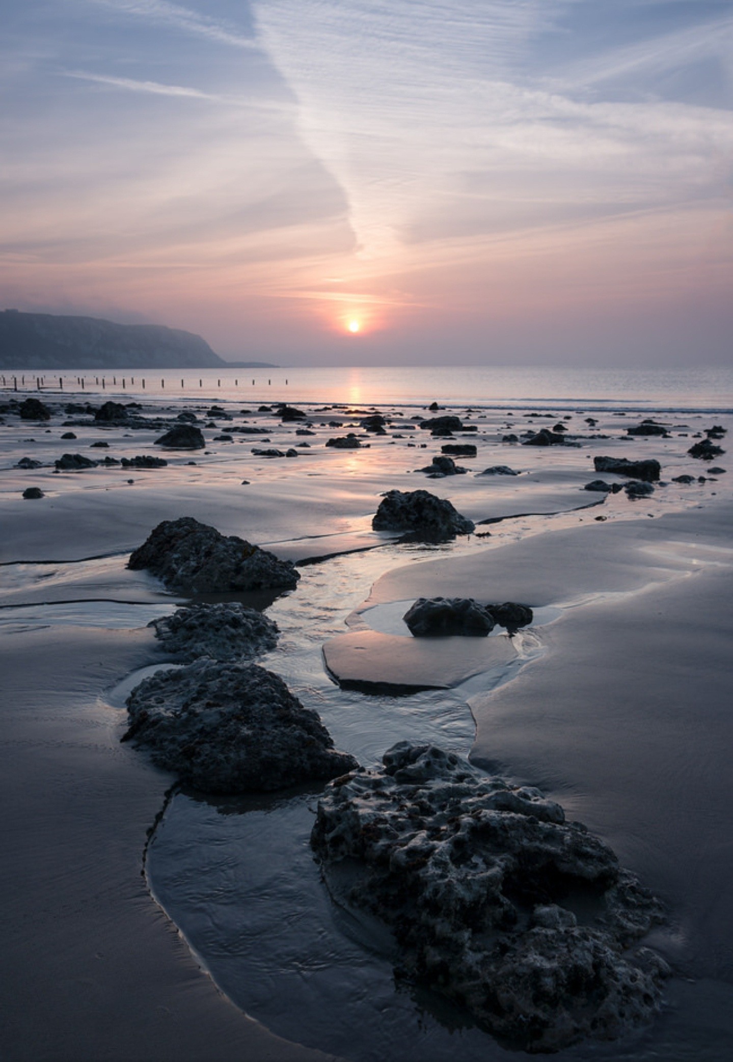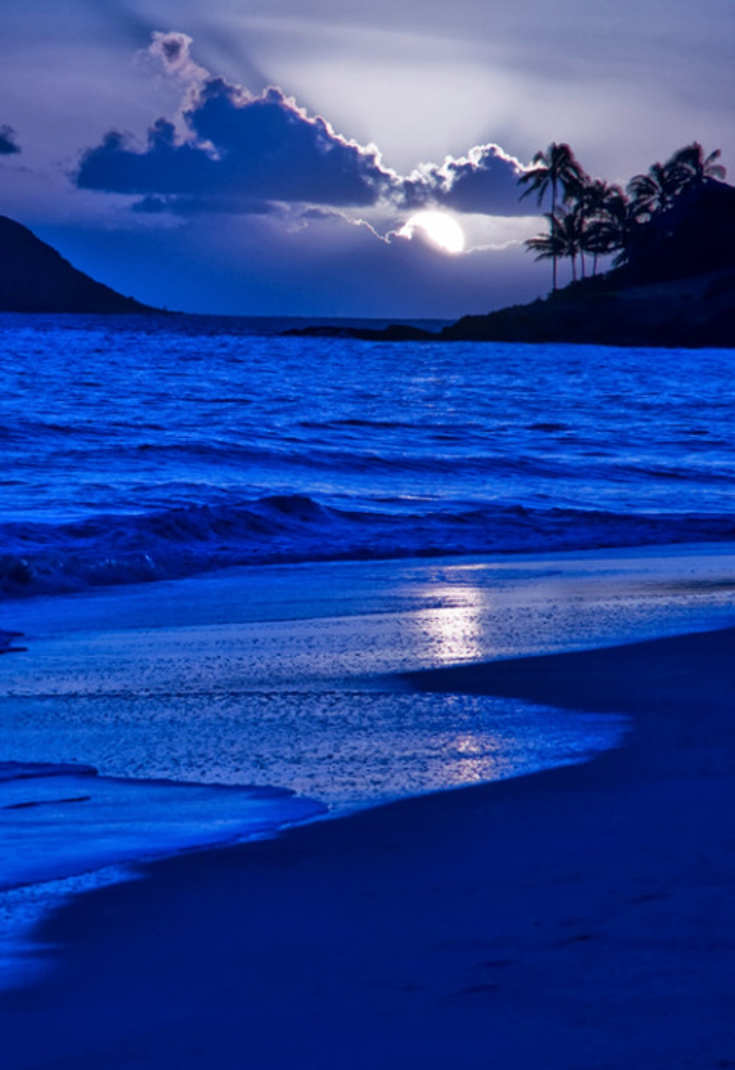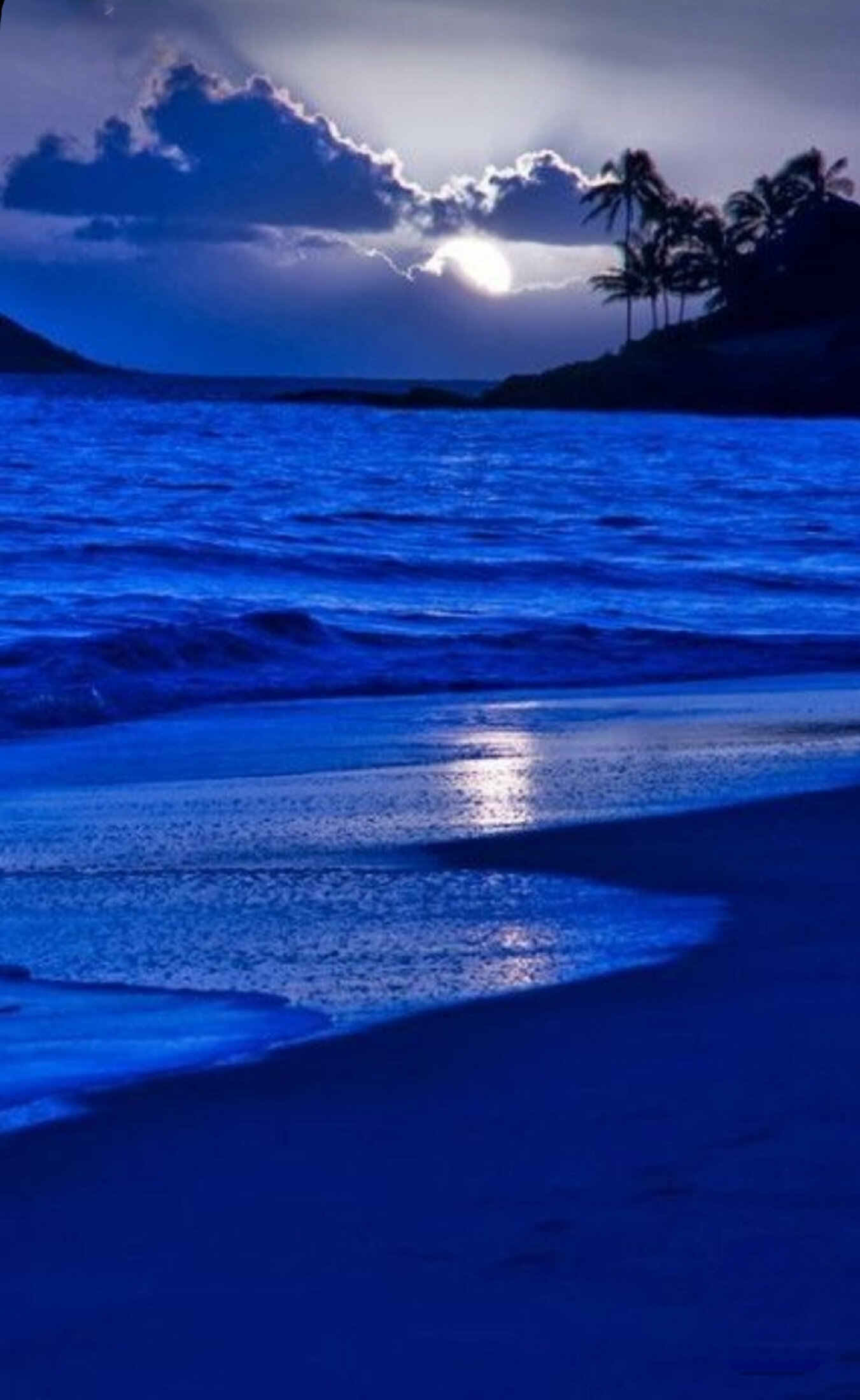 Blue beach sunset